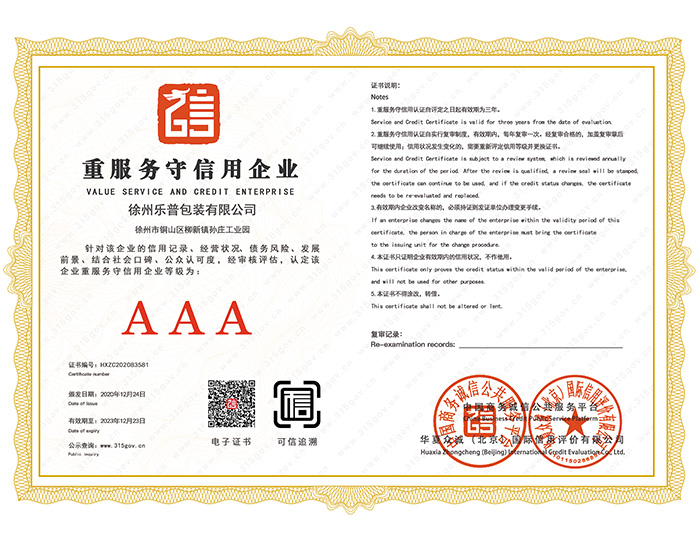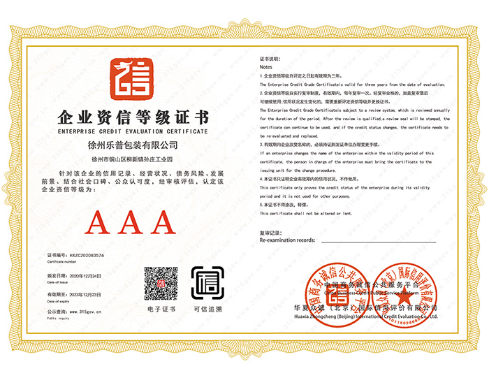 企業(yè)資信等級證書