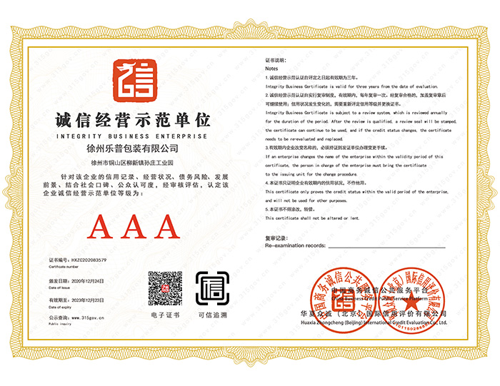 誠信經(jīng)營示范單位